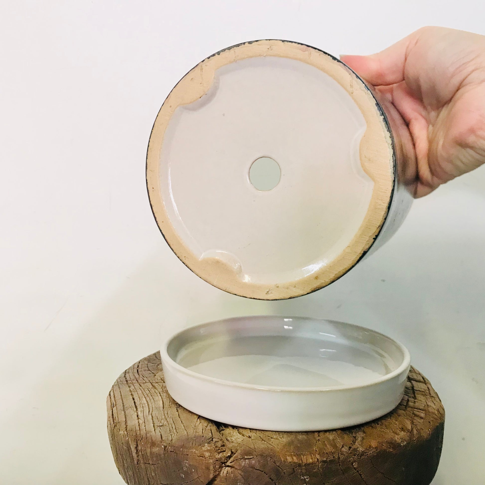 Pot - Width: 14.5cm, Height: 16cm. Tray - Width: 14.5cm, Height: 2cm