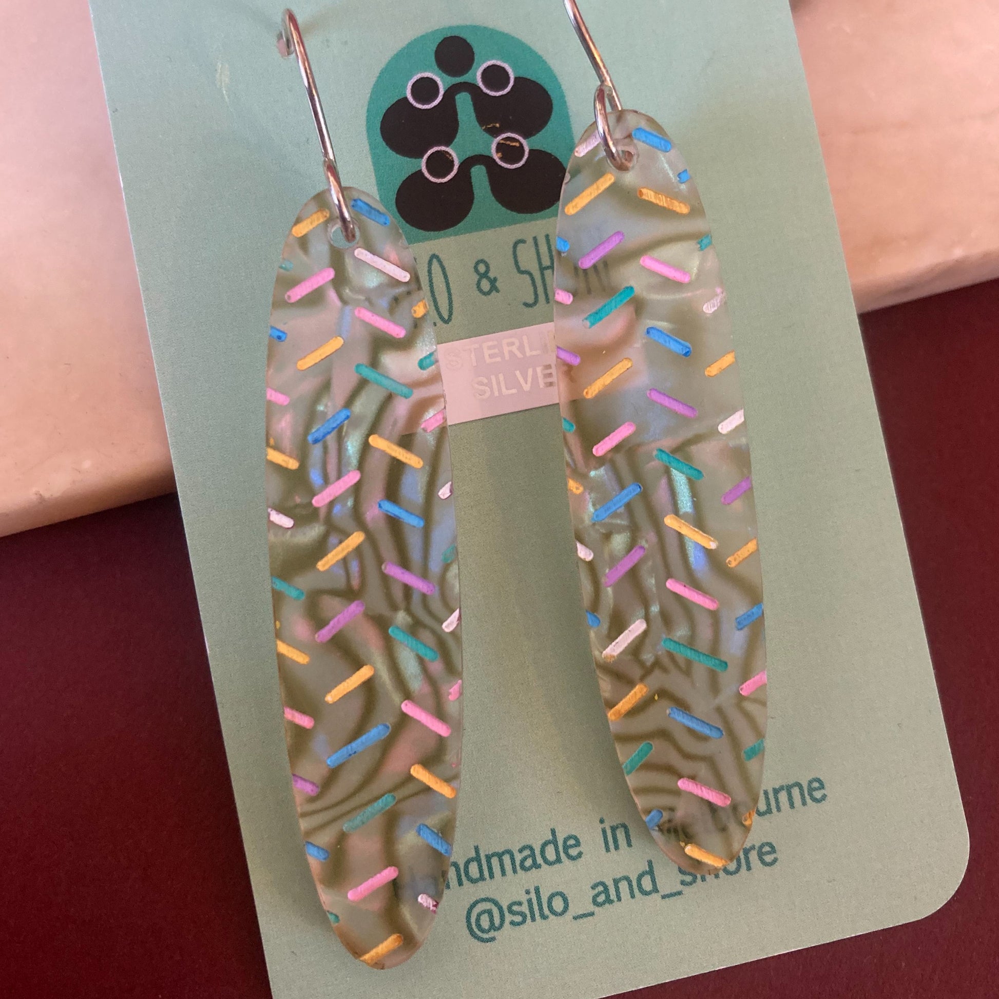 Beautifully detailed earrings - handmade in Melbourne's West; each piece is an original design and the hooks have been handcrafted from sterling silver.