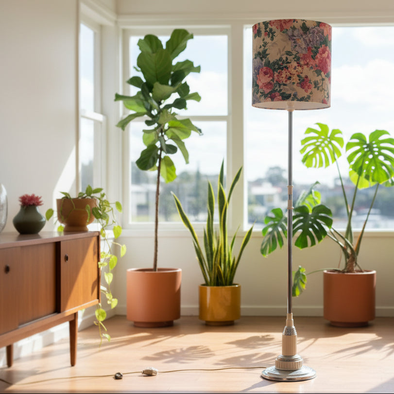 Art Deco Bakelite Standard Floor Lamp with Vintage Roses Shade