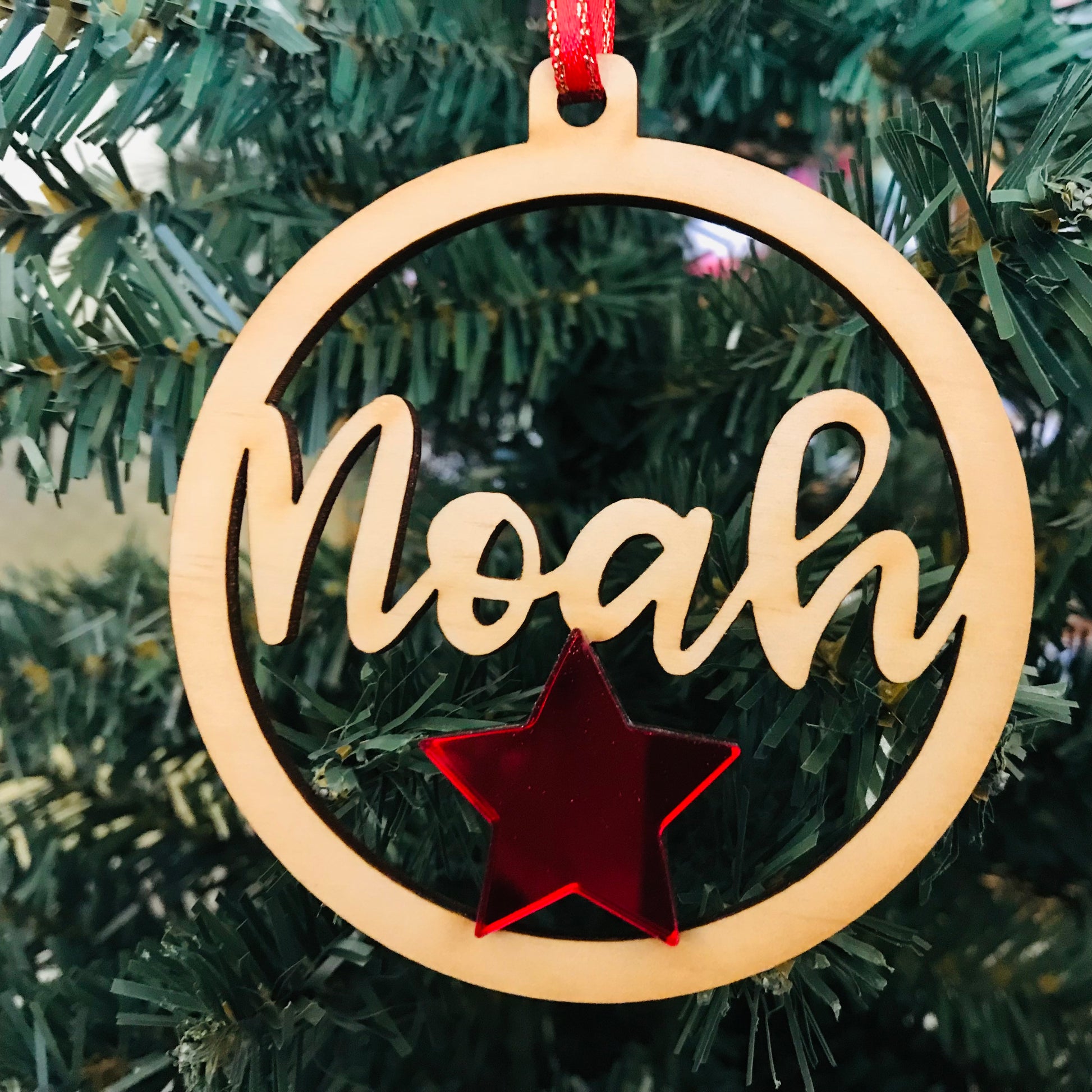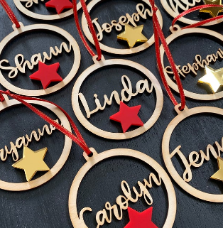 Christmas Personalised Decorations - Lasercut Plywood with Acrylic Star