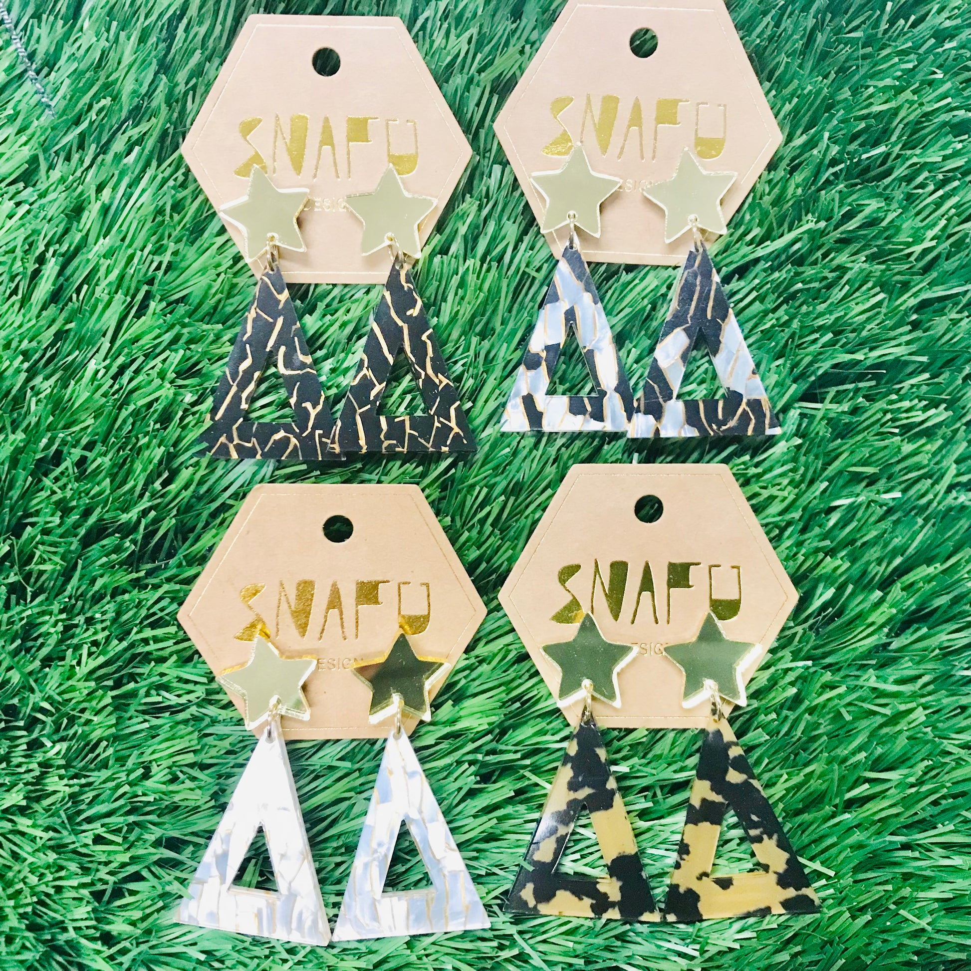 These gorgeous contemporary Christmas laser cut earrings will be the envy of all! In fun, vibrant colours with just the right amount of bling; they are super light and backed with stainless steel posts.