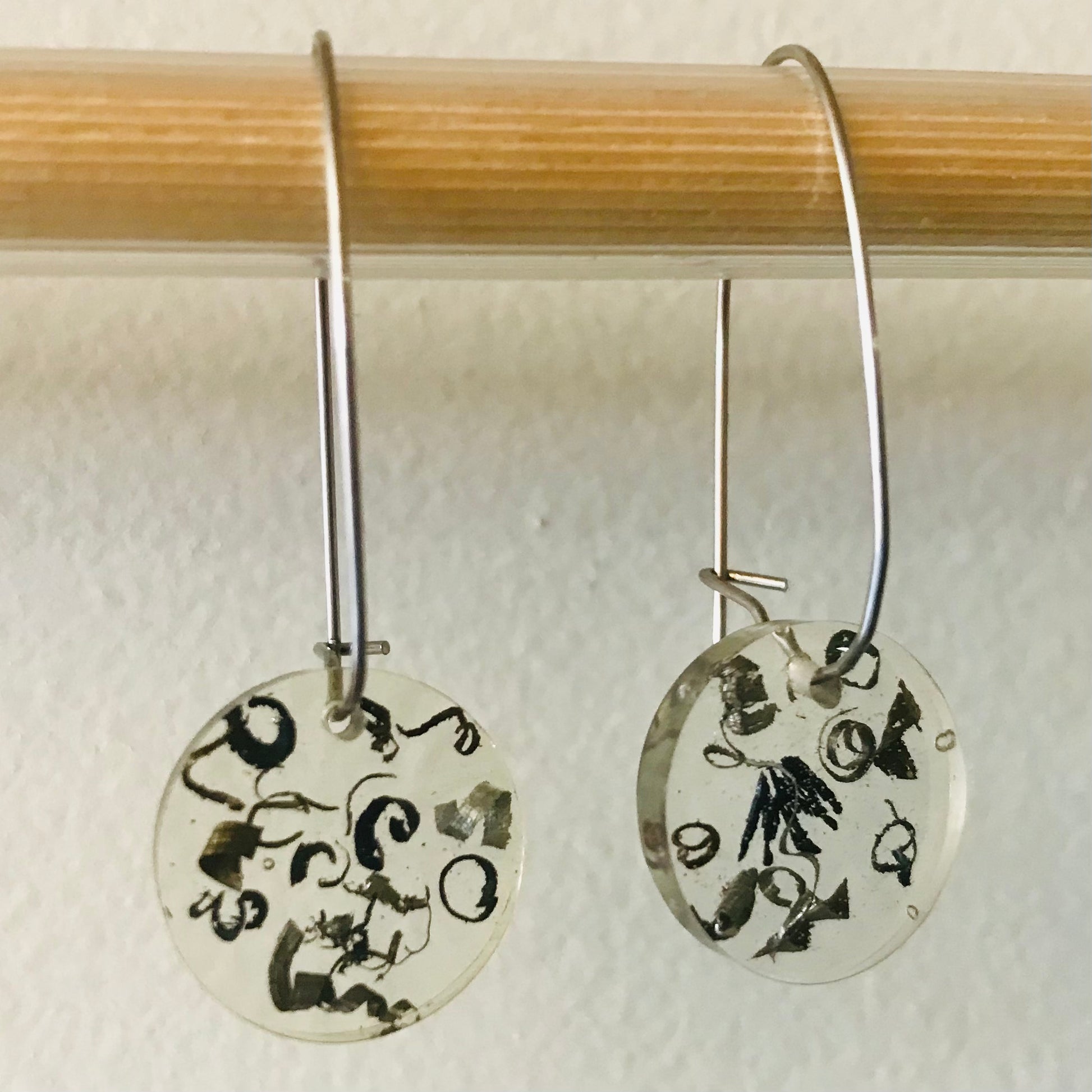 Clear Resin Lichen & Metal Shaving Earrings (small)