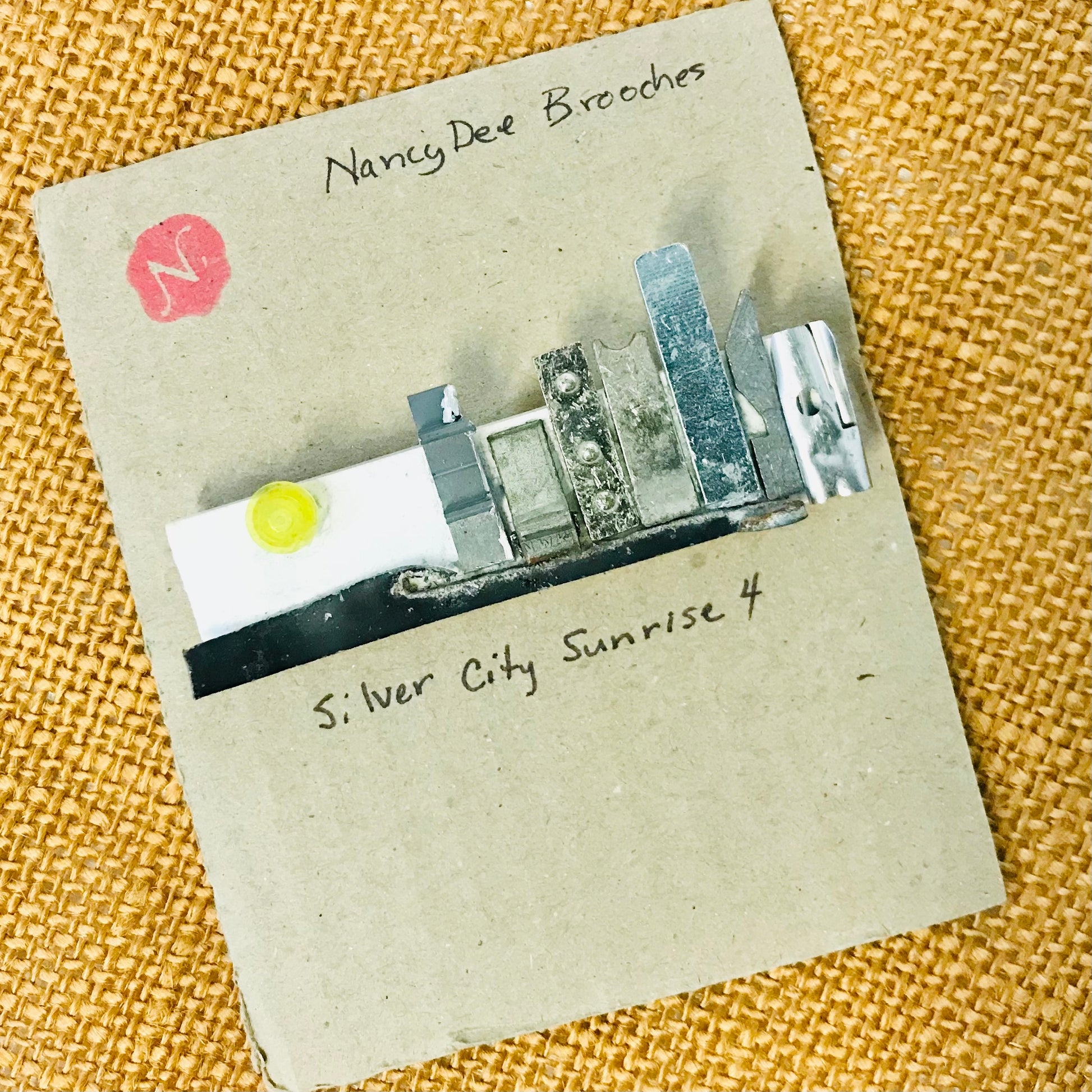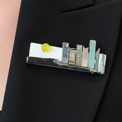 Artist NancyDee has created this quirky one-of-a-kind handmade brooch using a mixture of found metal, wood, tile and plastic rubbish. These materials have been gathered from the streets and laneways of Melbourne, as well as other cities where NancyDee has worked and travelled.