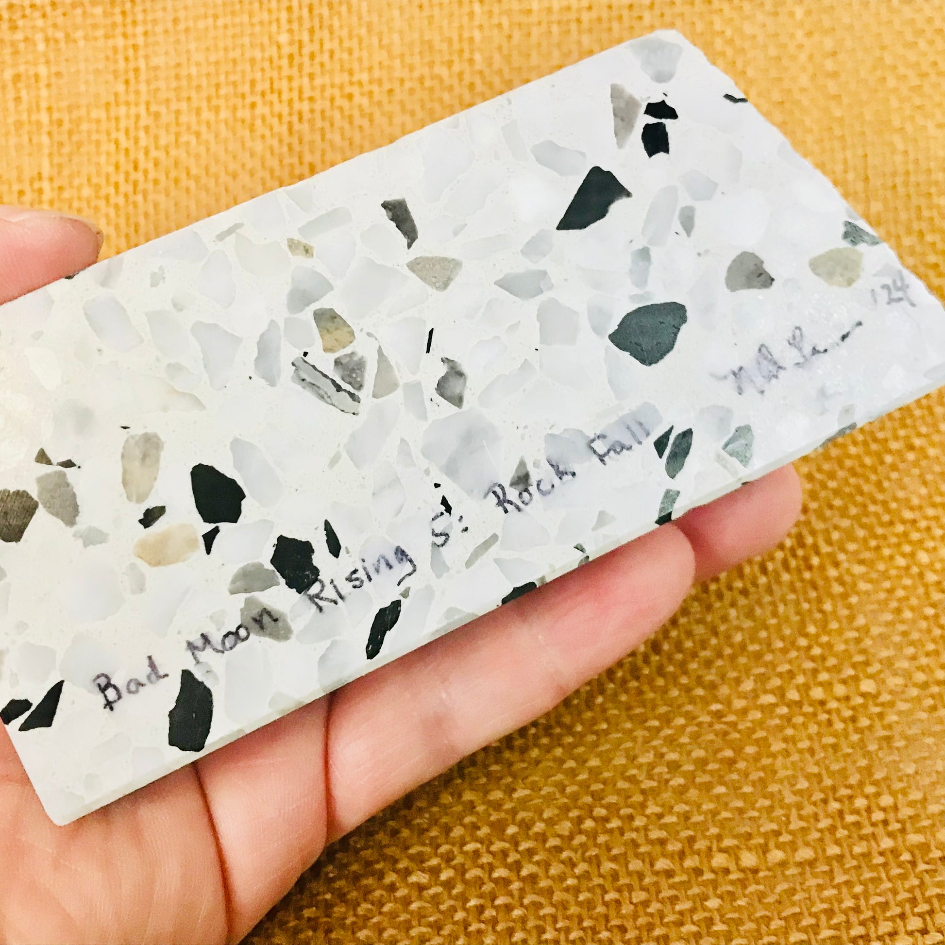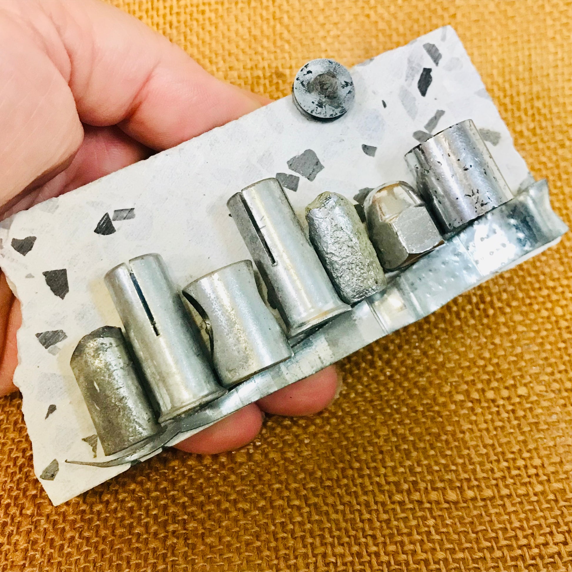 Materials used - Faux Granite backing, metal, plastic
