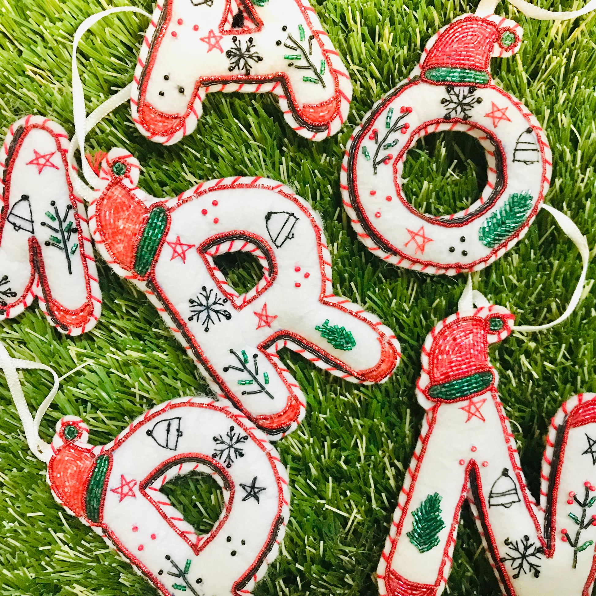 gorgeous hand beaded & embroidered padded Initial Christmas decorations