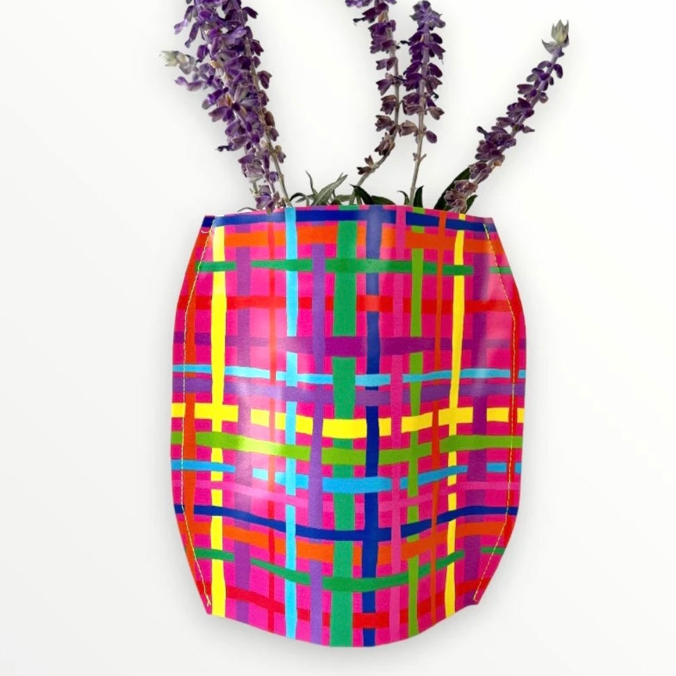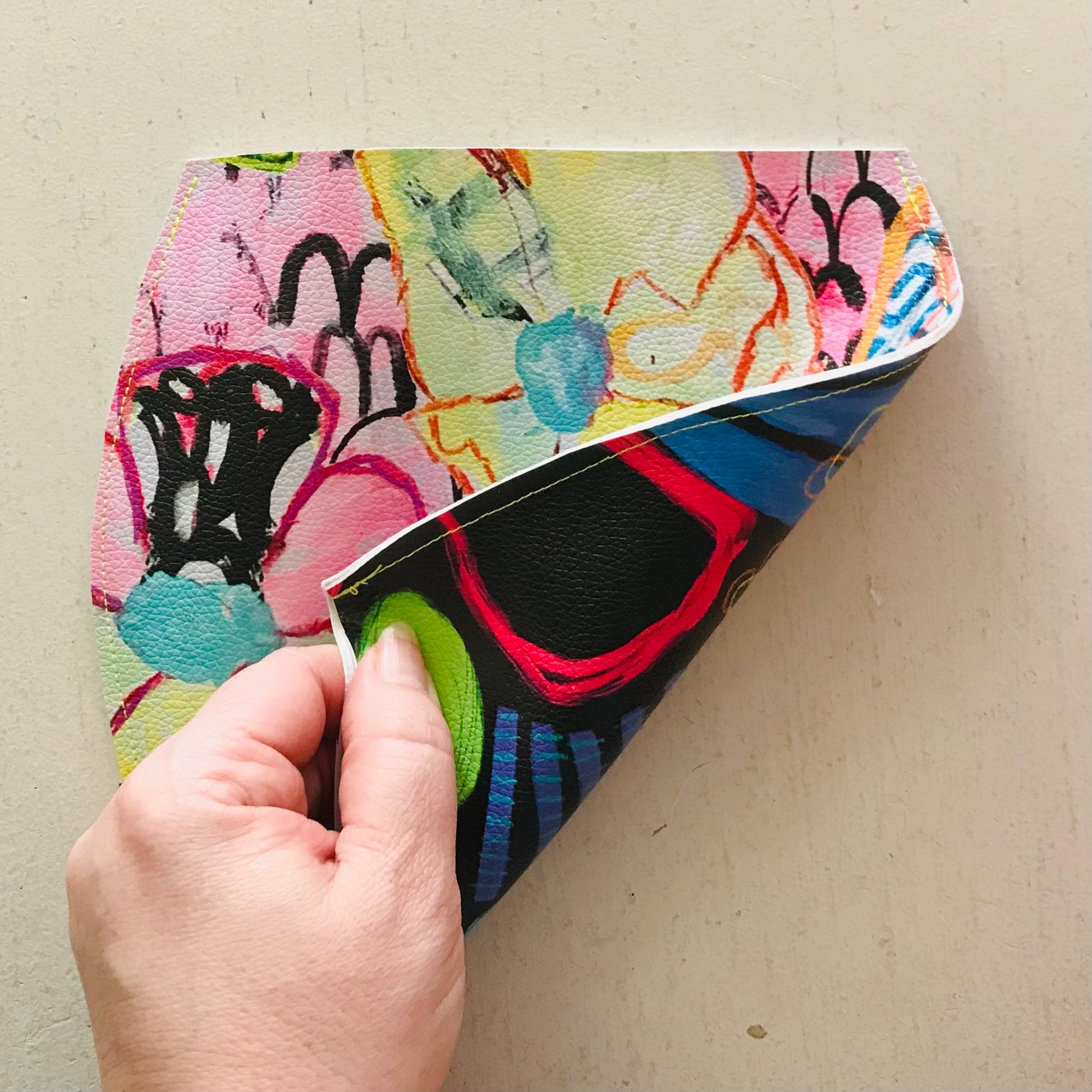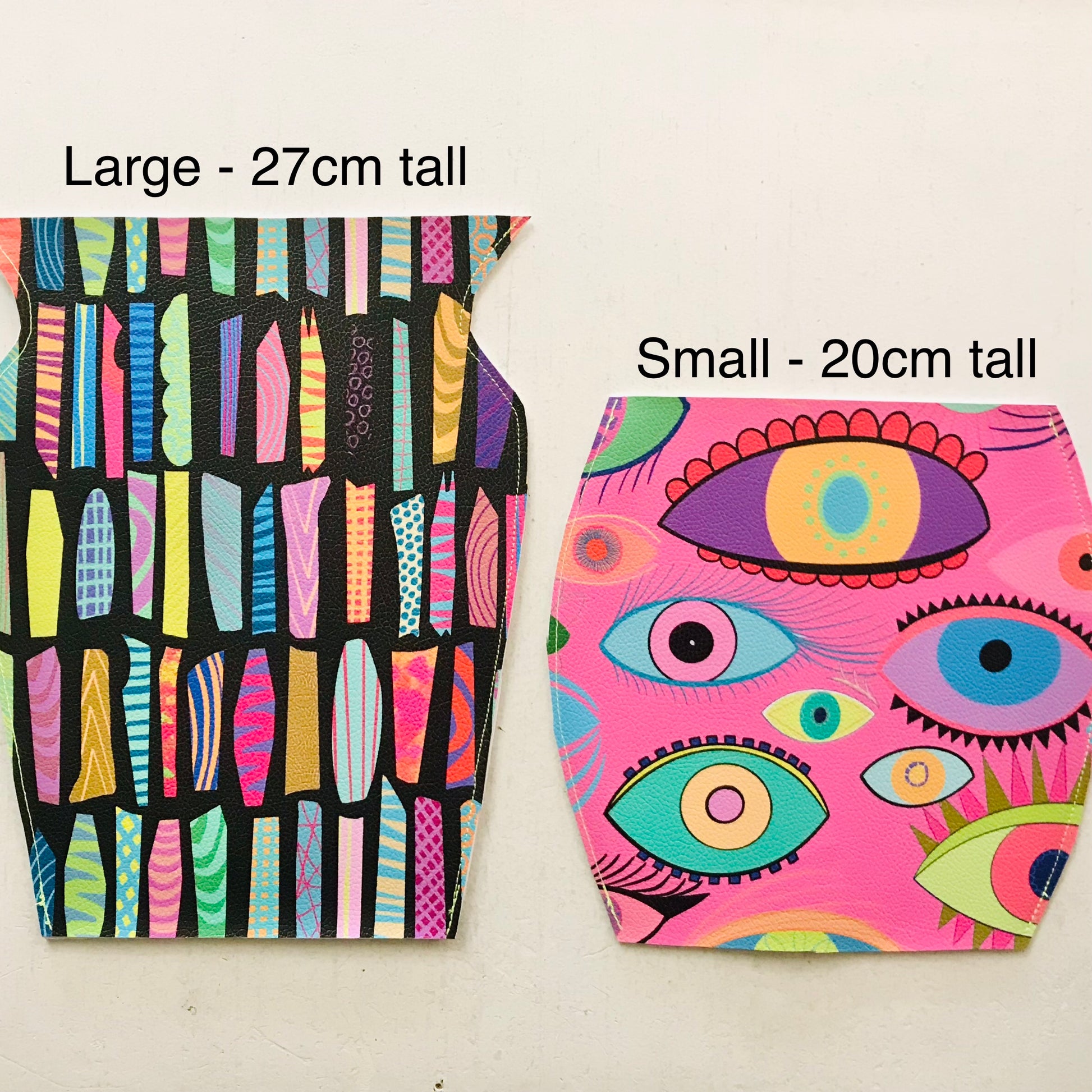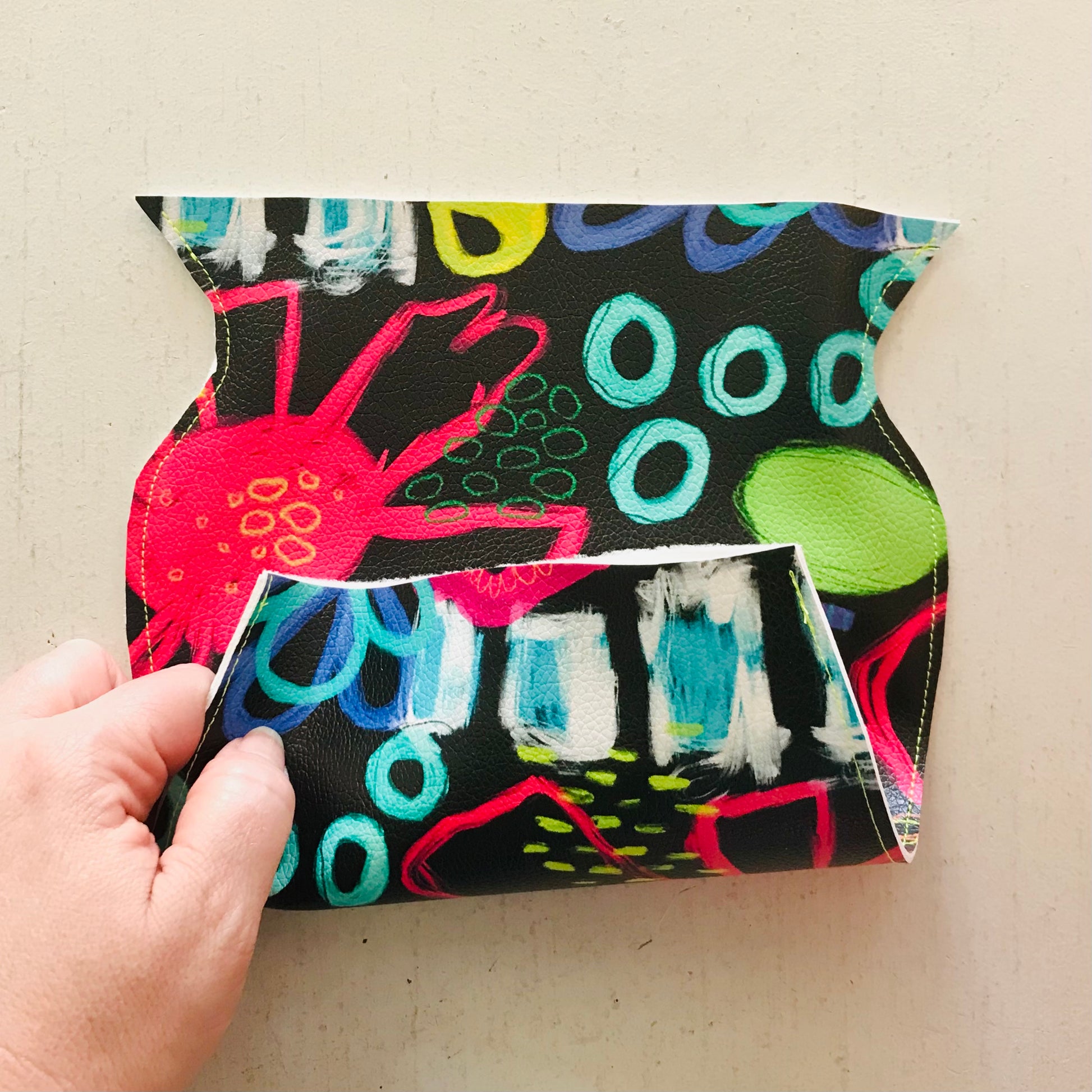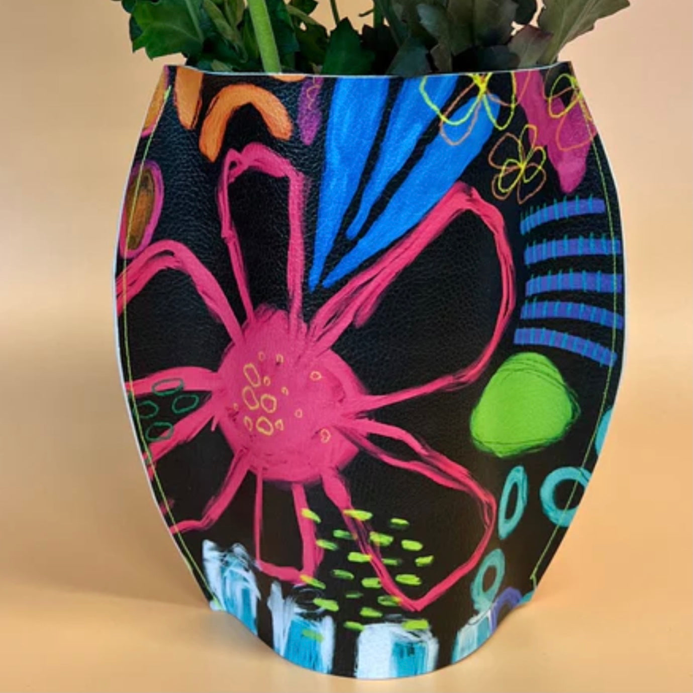 The flat Vase is made from vegan leather printed with the artists designs, hand cut and sewn in Melbourne's Inner West.