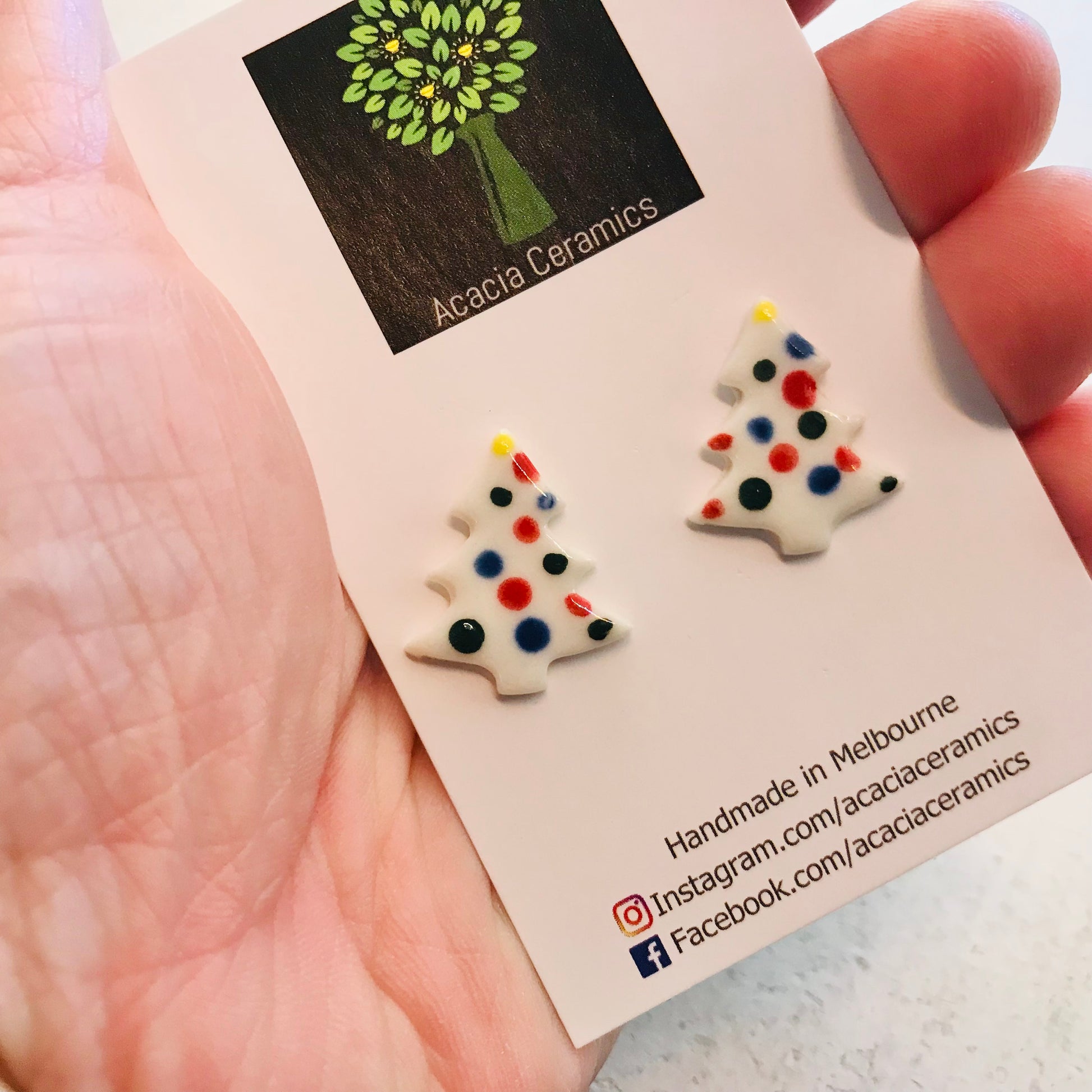 Our Christmas Stud earrings from our local ceramist is handbuilt, glazed and fired in her home studio in Melbourne’s West.