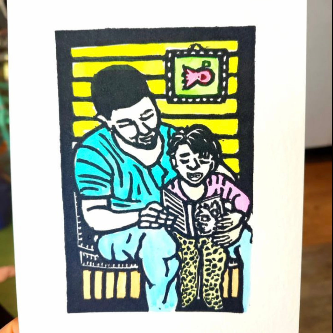 Hand printed & painted original linocut - MY DAD (unframed)