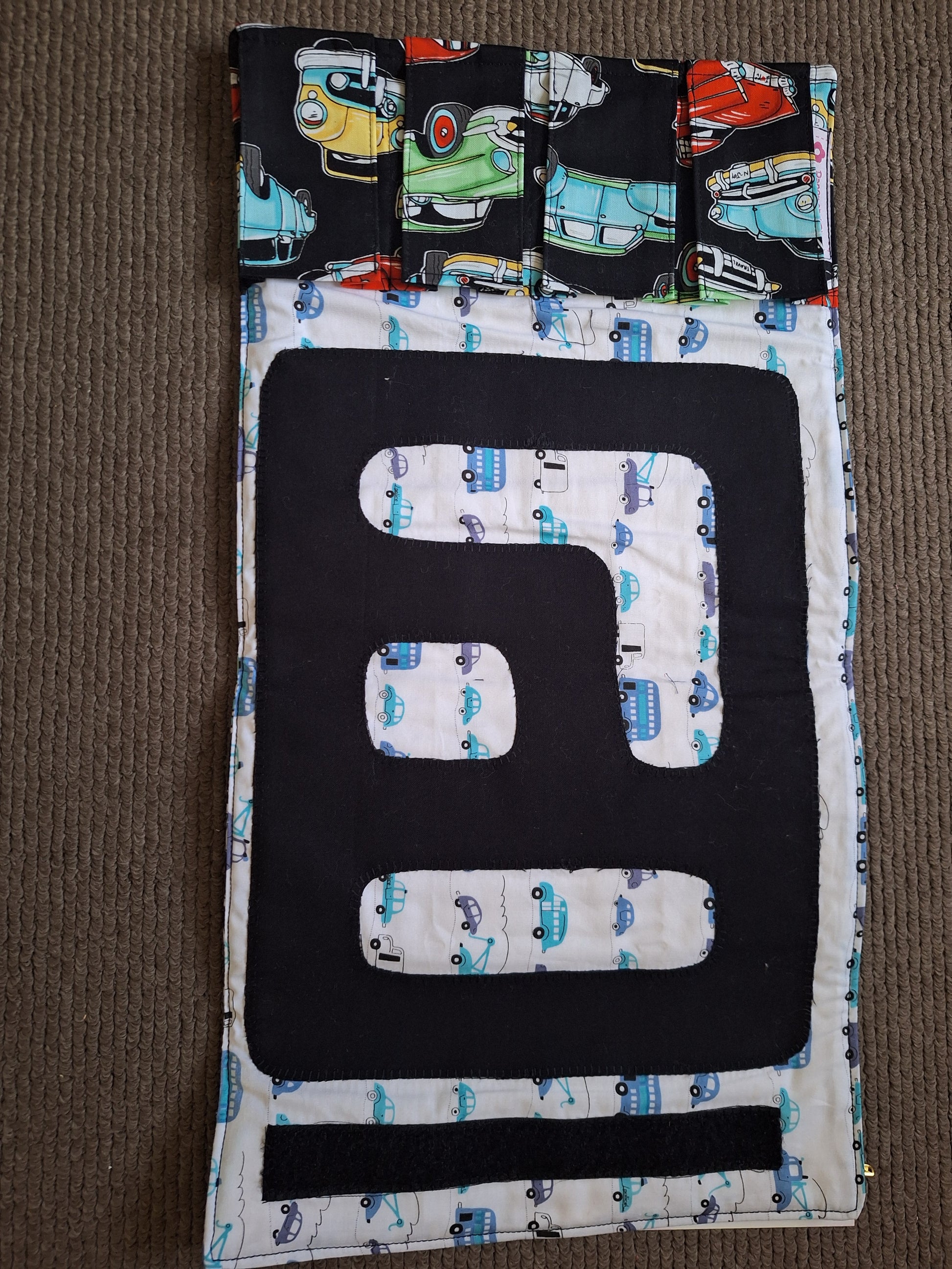 The perfect accessory for any little car lover - this roll has handy pockets for four small toy cars, and when rolled out has a great little track for racing. When rolled up it secures with a velcro strip to help keeps those cars safe and sound inside.