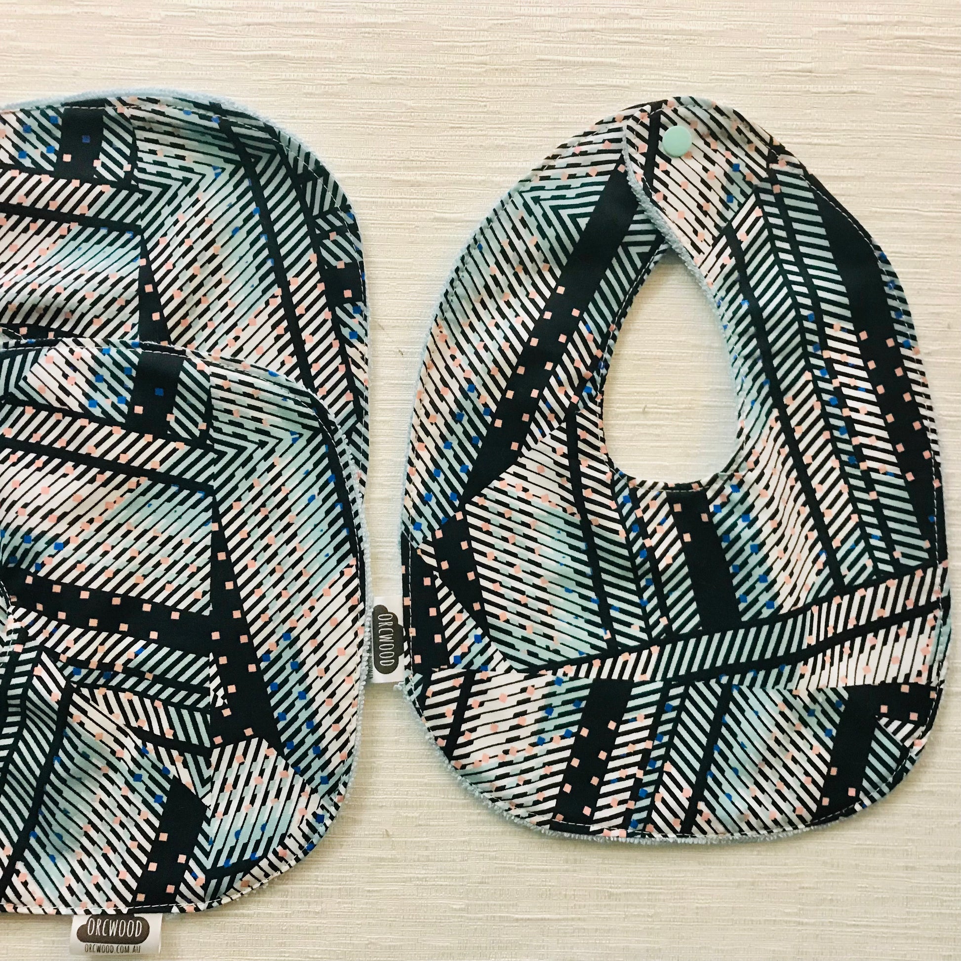 made using upcycled materials and fabric off-cuts these super hardy one-of-a-kind bibs can take repeated washer and dryer cycles.