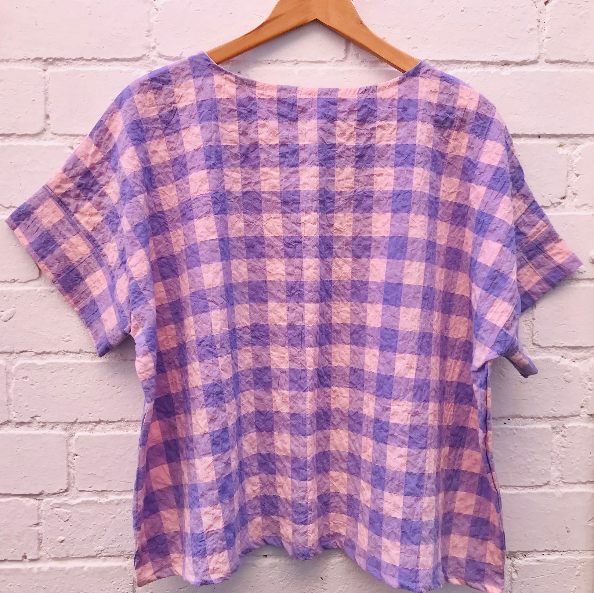 Handmade Women’s Box Top - Pink Purple Gingham (S/M)