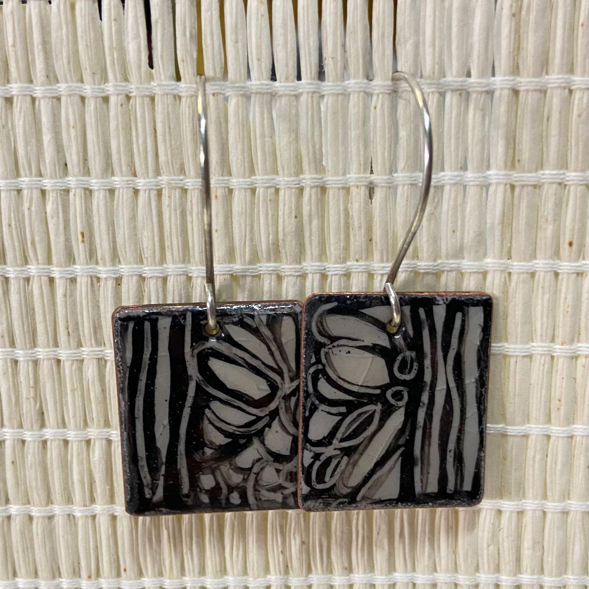 Delightfully intricate earrings - each piece is a unique handpainted creation using an etched on copper technique and finished with enamel to give a beautiful sheen.