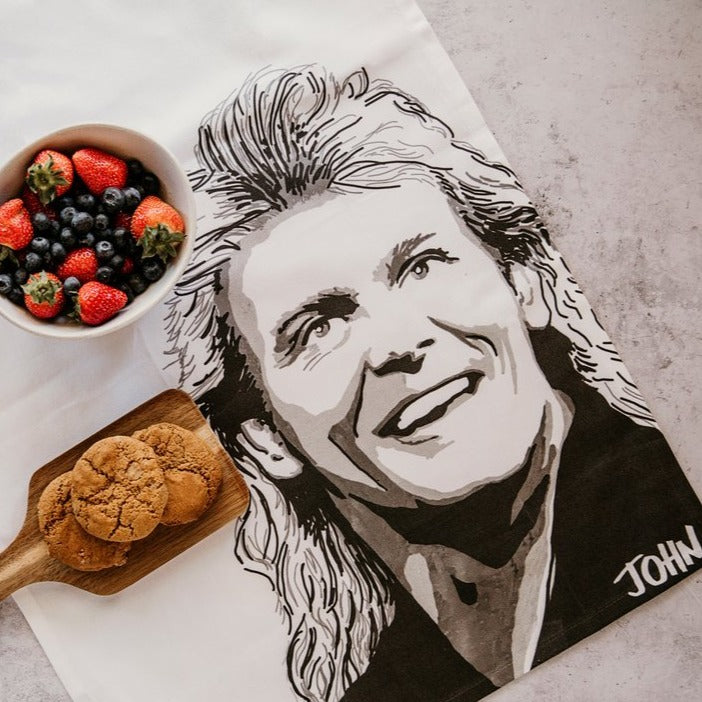Hand drawn portrait of JOHN printed on 100% organic cotton tea towel. Designed by Jess and printed in Melbourne.