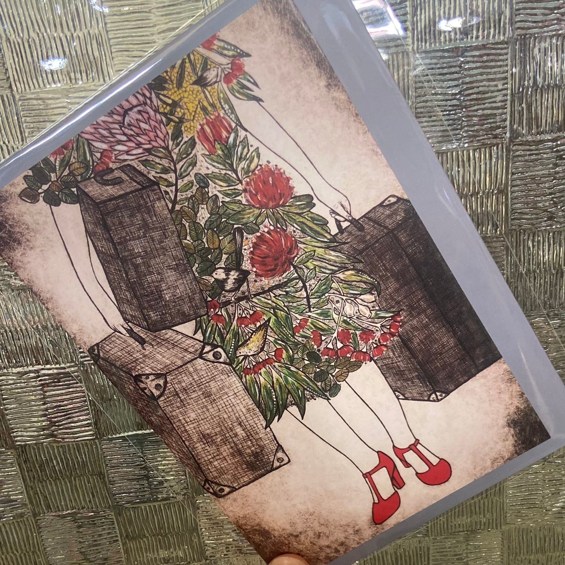 Each card is blank on the inside making it lovely and versatile for any special occasion. Each card is digitally printed and comes with a recycled paper envelope. All designs are based on original artworks by contemporary printmaker, Kate Piekutowski. The designs have been inspired by whimsical narratives, childhood memories and travelling. Her playfulness for story telling make the perfect inspiration for letter writing and romance.