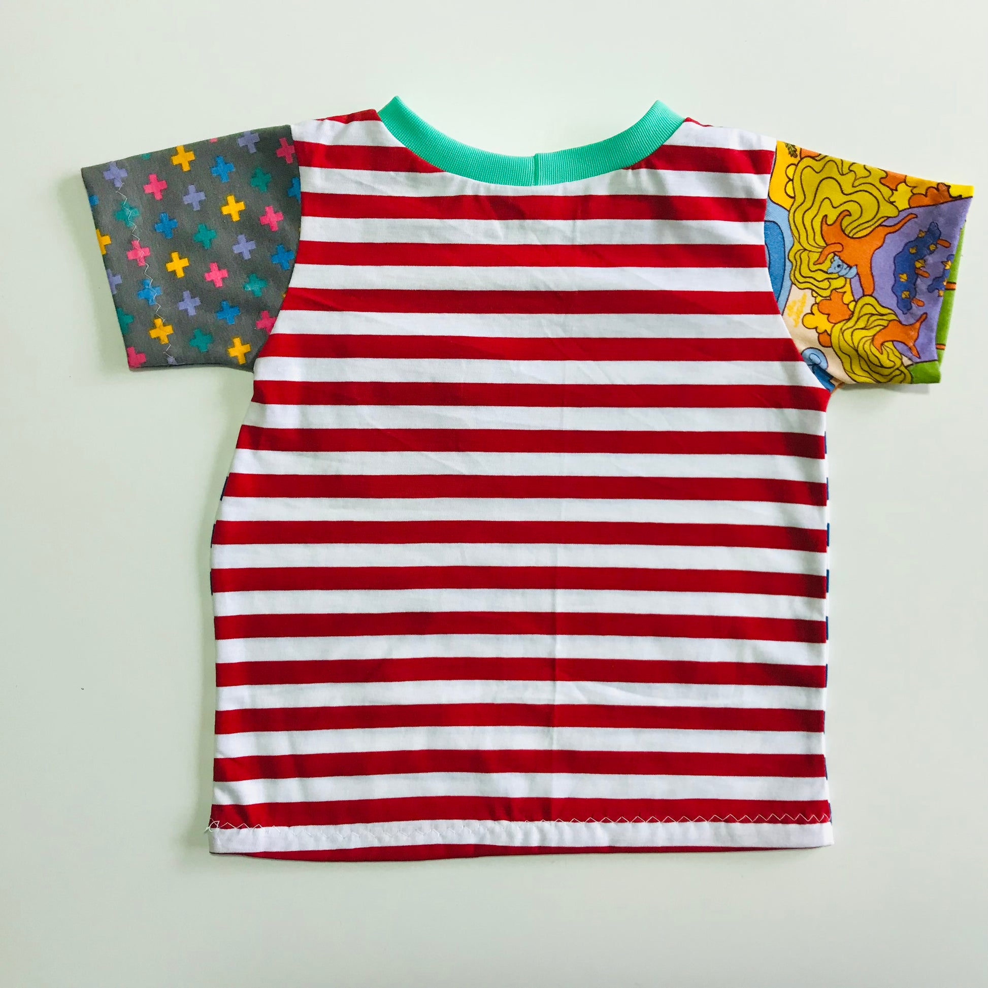 A handmade kids tee made up of contrasting prints in high quality stretch cotton jersey.
