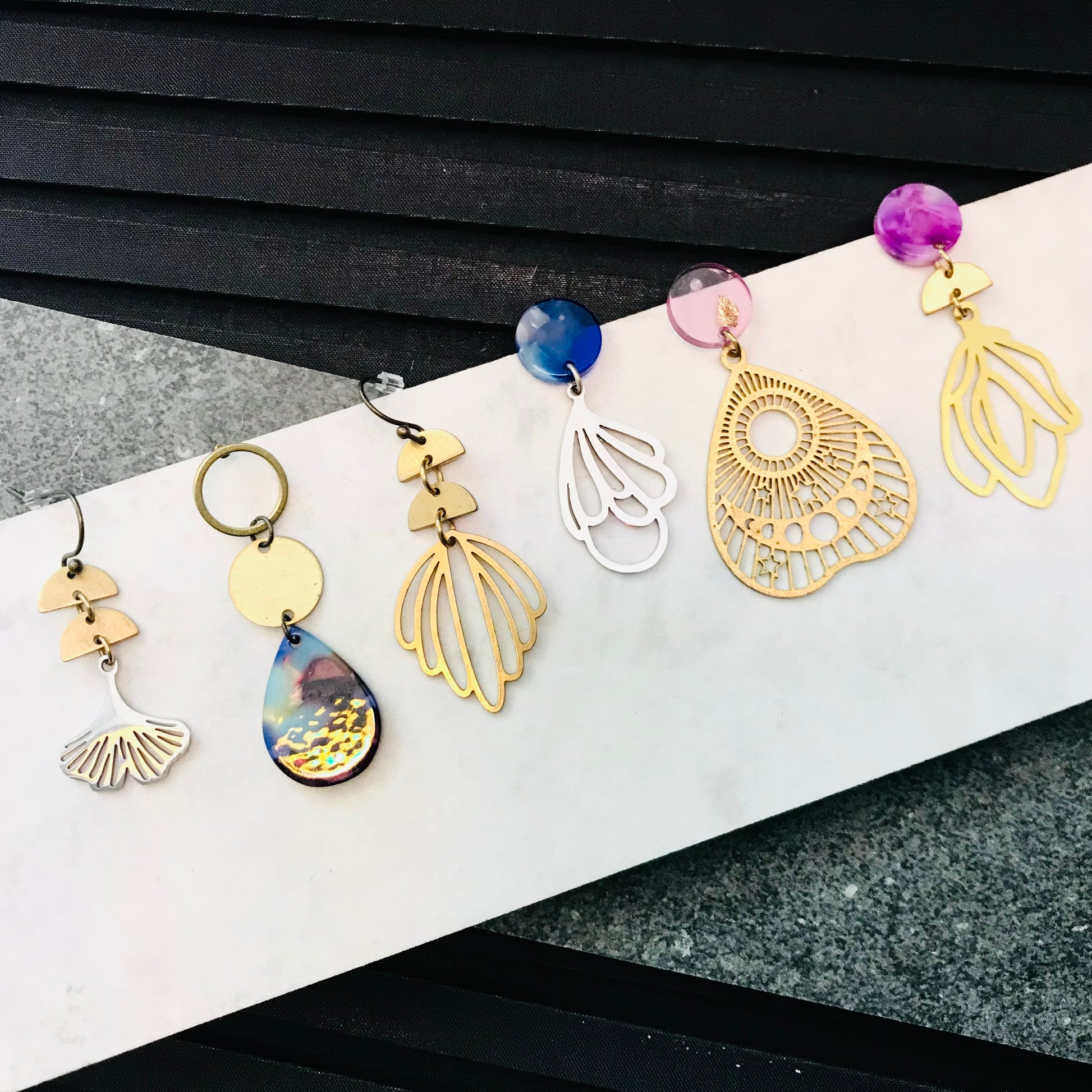 Beautifully detailed earrings - handmade in Melbourne's West; each piece is an original design made up using a mixture of metal and resin pieces.