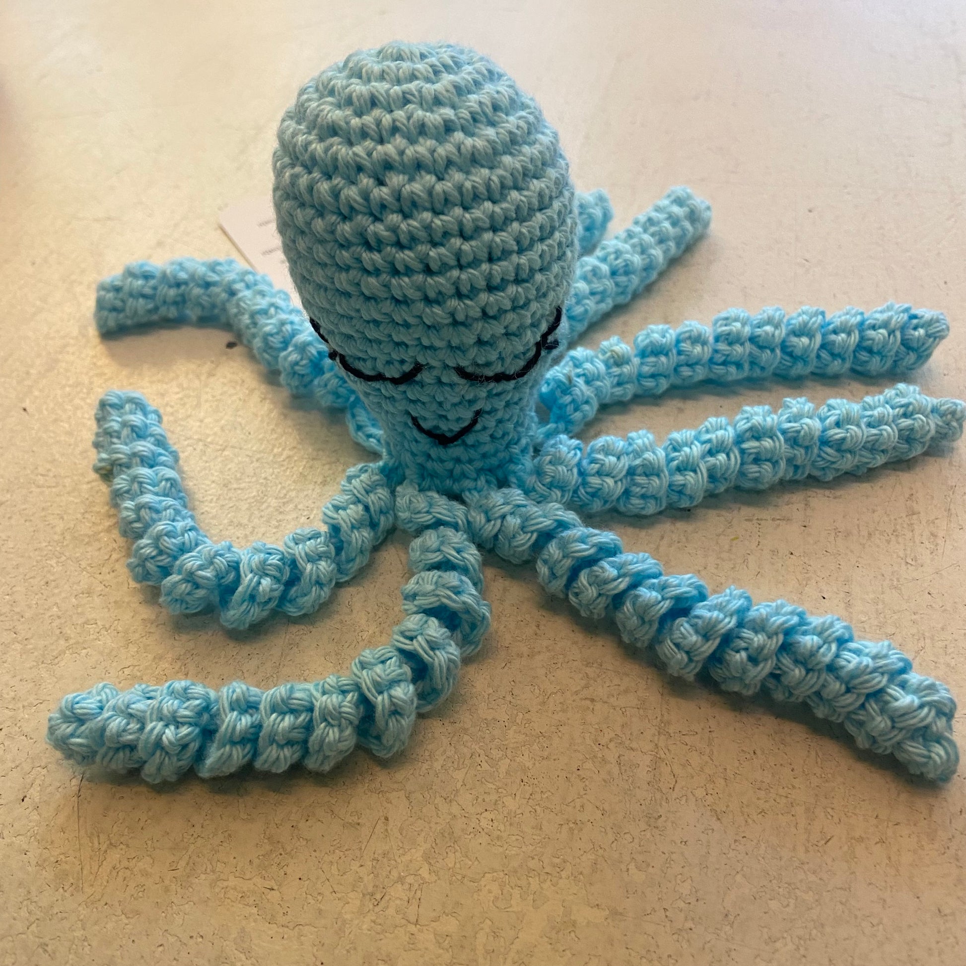 The 100% cotton octopui are highly recommended for newborns & premmies, the cotton fibres are safe for all ages & the tentacles are the perfect size for little hands to grasp. In Denmark and the UK specialists have discovered that snuggling up to the cozy tentacles of these crochet octopi helps premmies as they grow stronger. The tentacles are also useful for deterring the teeny tots from attempting to pull out their monitors and tubes.'