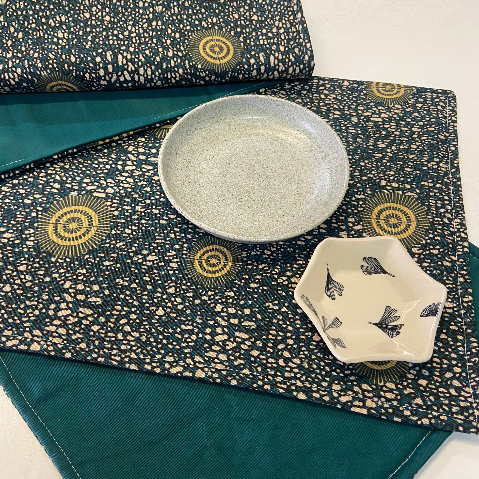 Reversible Placemats - Warm Spirals with Forest Reverse (set of 4)