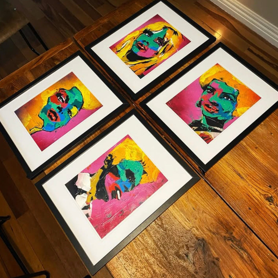 Spray paint and acrylic artwork on canvas, framed and ready to hang