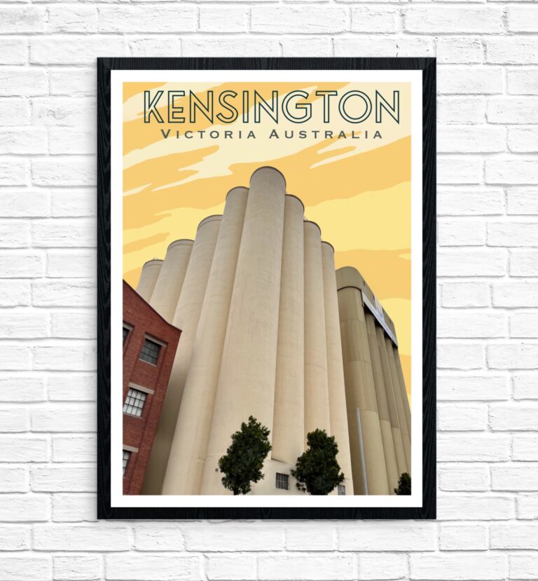 This artwork features Kensington’s Allied Pinnacle Mills. The Mills site has been an operational flour mill since 1887. Allied Mills manufactures and distributes milling based products including flours for bread, cake, pastry, biscuits, noodle and culinary applications, premixes for bread, cakes and donuts and culinary and specialty meals, semolinas and brans.