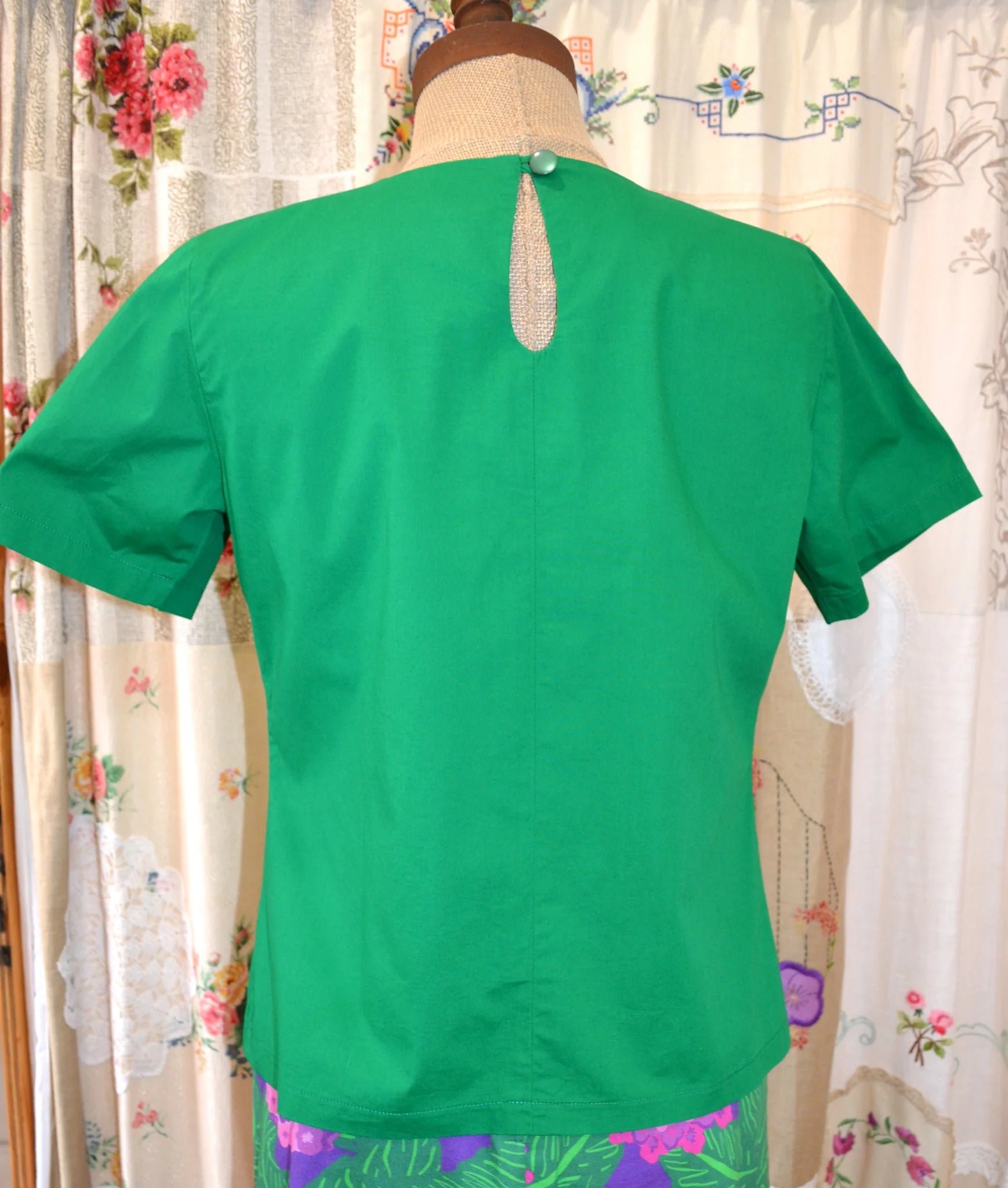 Women's Handmade Keyhole Top - Emerald Cotton