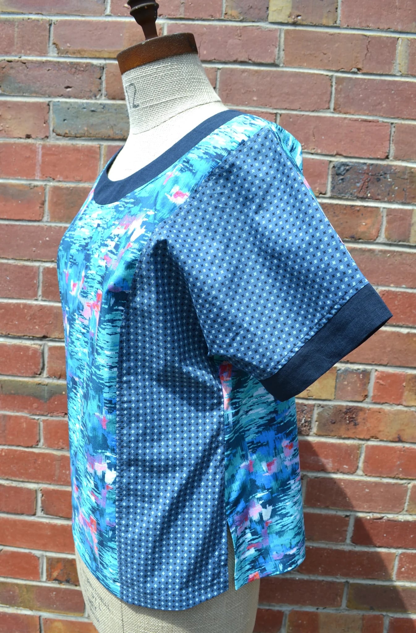 Women's Handmade Paneled Top - Rounders Blue Moods
