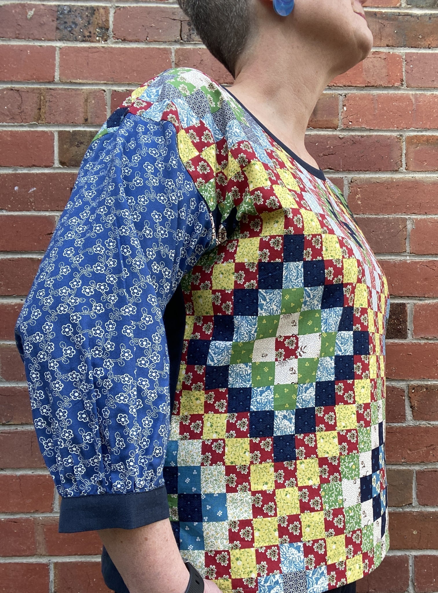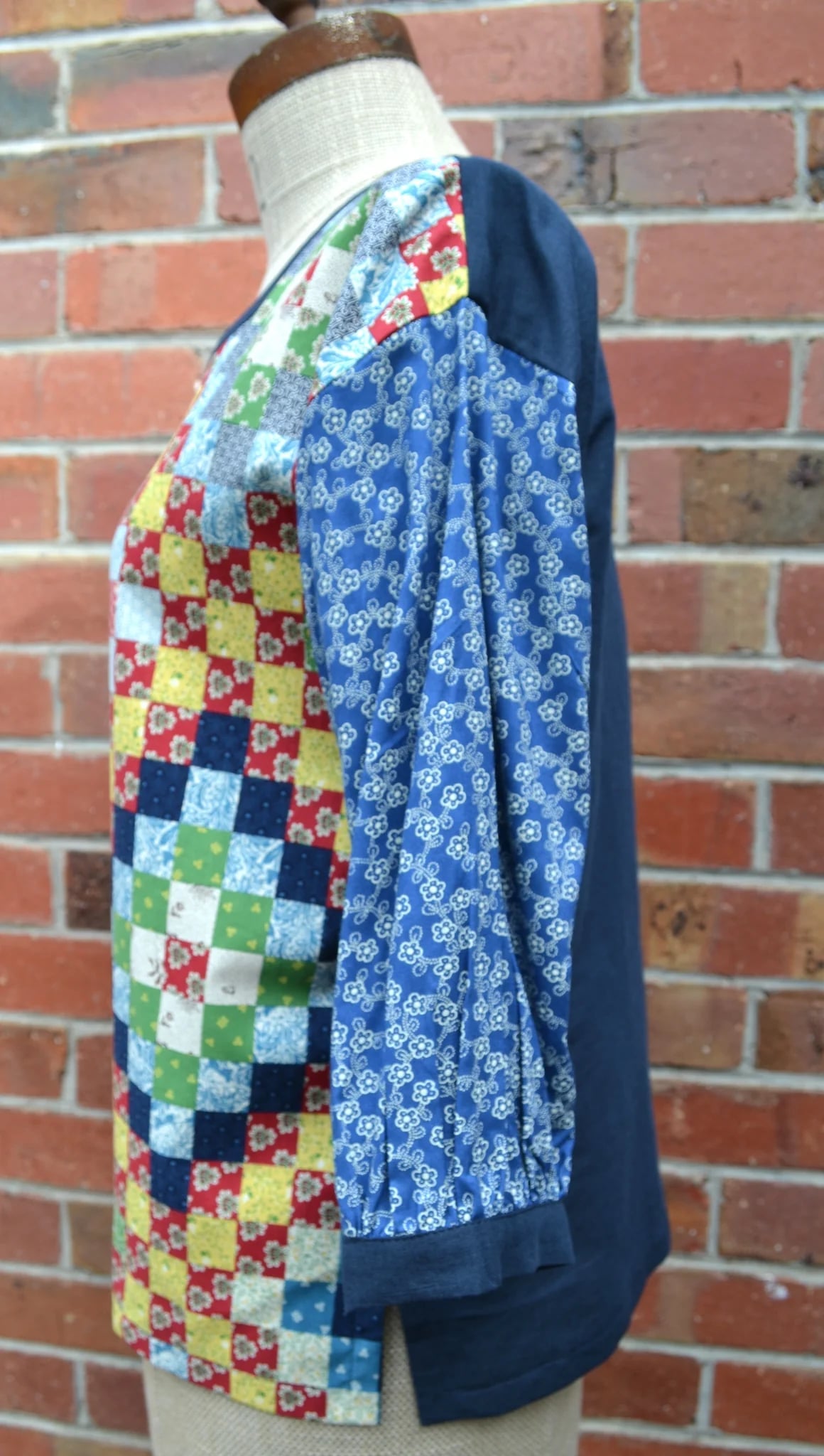 The feature fabric of these tops is the beautiful 'Postage stamp' printed cotton.